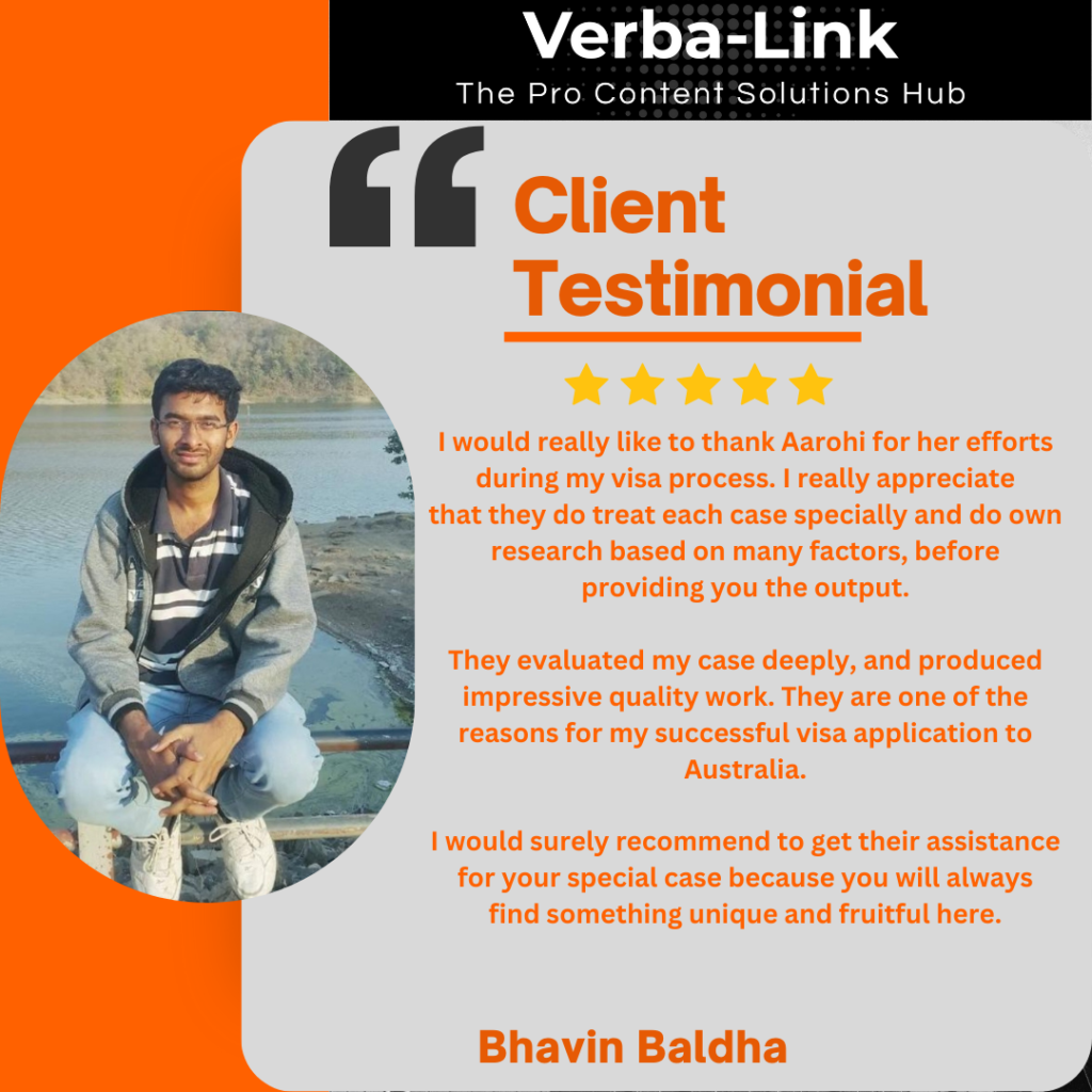 At Verba-Link, we specialize in high-impact content creation, professional editing, and expert-led training for SOPs, VISA applications, pre-interview coaching, and IELTS preparation. Our team of seasoned writers and trainers is dedicated to helping you craft compelling narratives, meet global requirements, and achieve success in your academic, professional, and immigration endeavors.